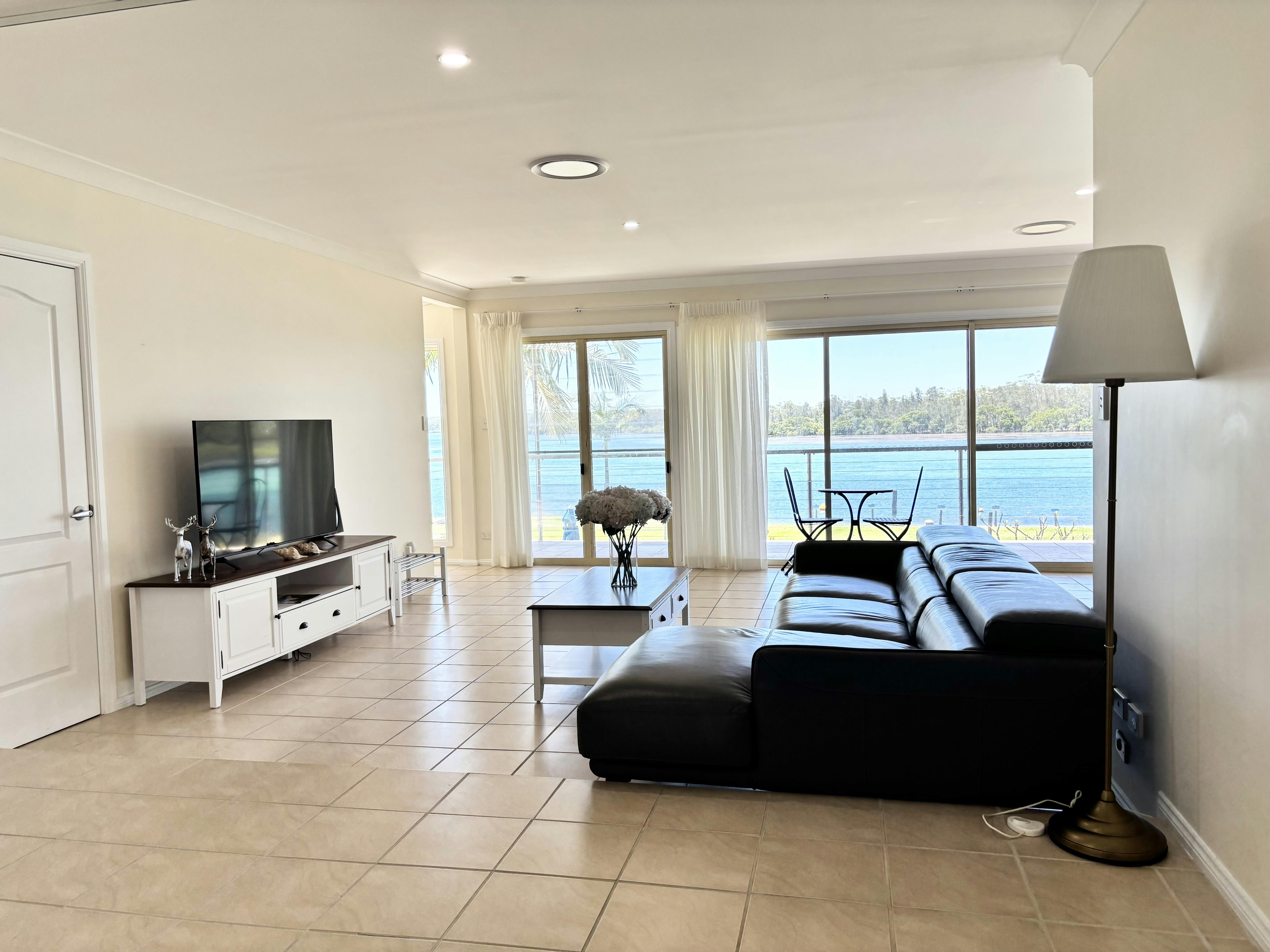 The only one unforgettable water view apartment! There is a wonderful view dinning area, a full size kitchen and a private bathroom with separate toilet. Rooms consist of 2 x double bed in room one, and 1 x queen bed and a double bunk in the second room. There are cooking facilities in the way of microwave oven, toaster, hotplates and small oven, kettle and sink with hot and cold running water with all your crockery and cutlery etc..., there is also a full sized fridge and smart TV. This apartment are setup to sleep 6 people. x persons, there is the capacity to accommodate 2 x extra persons. Extra charge apply if require extra bed which will be charged per night. There is 1 x parking space. If you plan to bring a Boat or trailer it is generally not a problem. Free Wi-Fi and Netflix. Please be aware that we do have security camera at the balcony area, and there is high step stairs to entry. Kids are required to be monitor all the time. Very sorry, pets are not allowed. , please be aware of elderly. Enjoy your stay!
